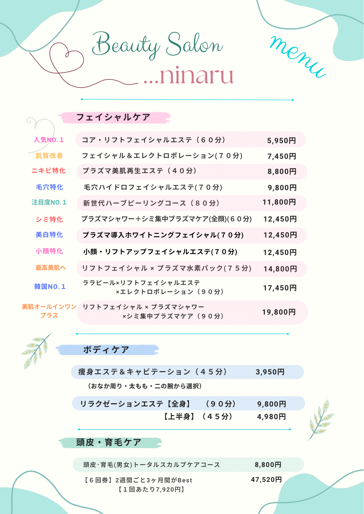 新サロンメニュー2025.9